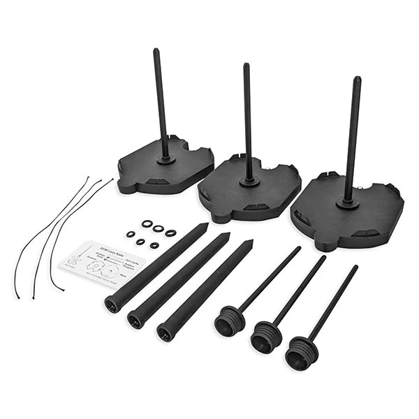 - Rods unscrew and bases stack together, making this extremely portable.